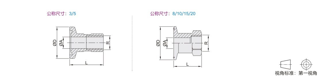 型号 适用管径 R D A L