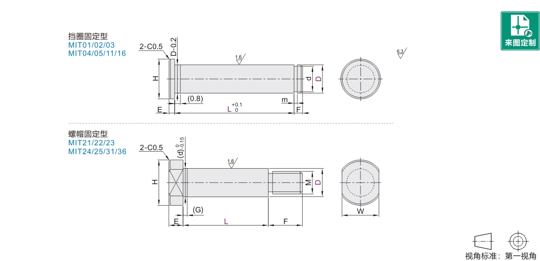 | MIT01 | MIT21 | 45 | S45C | — | 发黑 | 1个 挡圈 |