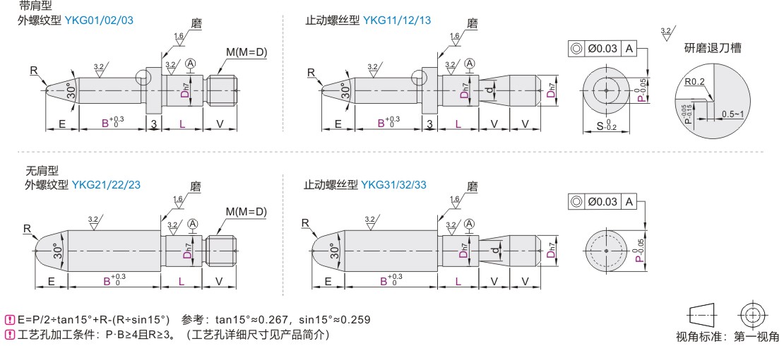| 外螺纹型 止动螺丝型 YKG01 YKG11 YKG02 YKG12 YKG03 YKG13 |