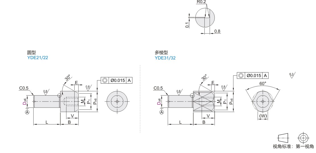 | 圆型 | 多棱型 | 国标 | 相当 | |