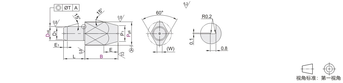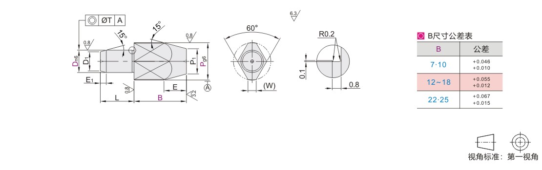 定位销 大头锥角型 D公差n6 多棱型·P.B尺寸选择型
