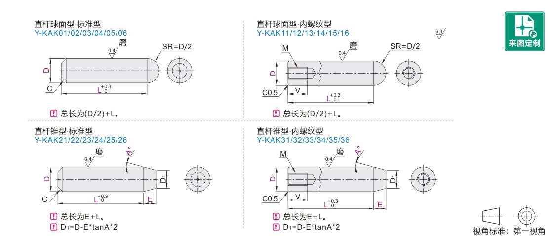 | Y-KAK02 | Y-KAK12 | Y-KAK22 | Y-KAK32 | 镀层硬度800HV~ | 镀黑铬,镀层厚度3~5μm | ||