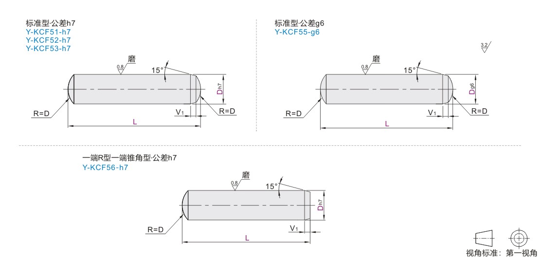| Y-KCF56-h7 | 一端R型一端锥角型 | h7 | 0Cr18 Ni9 | SUS304 | — |