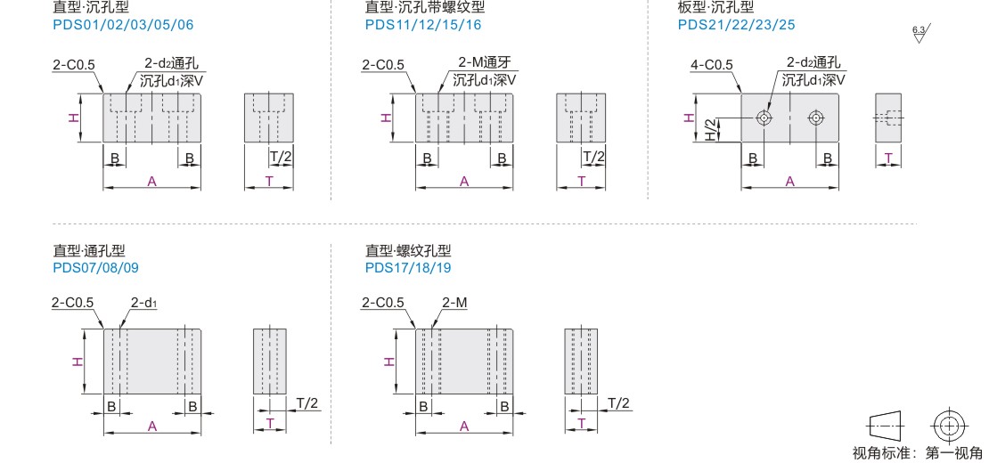 | 通孔型 螺纹孔型 PDS07 PDS17 PDS08 PDS18 PDS09 PDS19 |