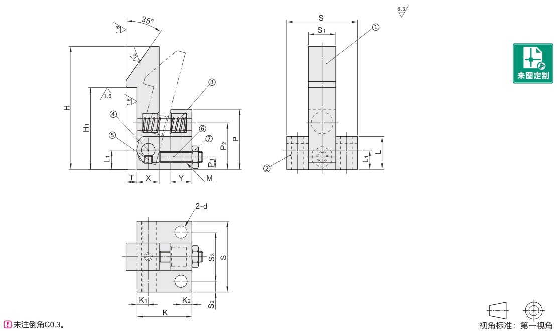 | 代码 | 类型 | ①卡爪 | ②底座 | ③弹簧 | ④导向轴 | ⑤⑥止动螺钉 | ⑦螺帽 | ||||