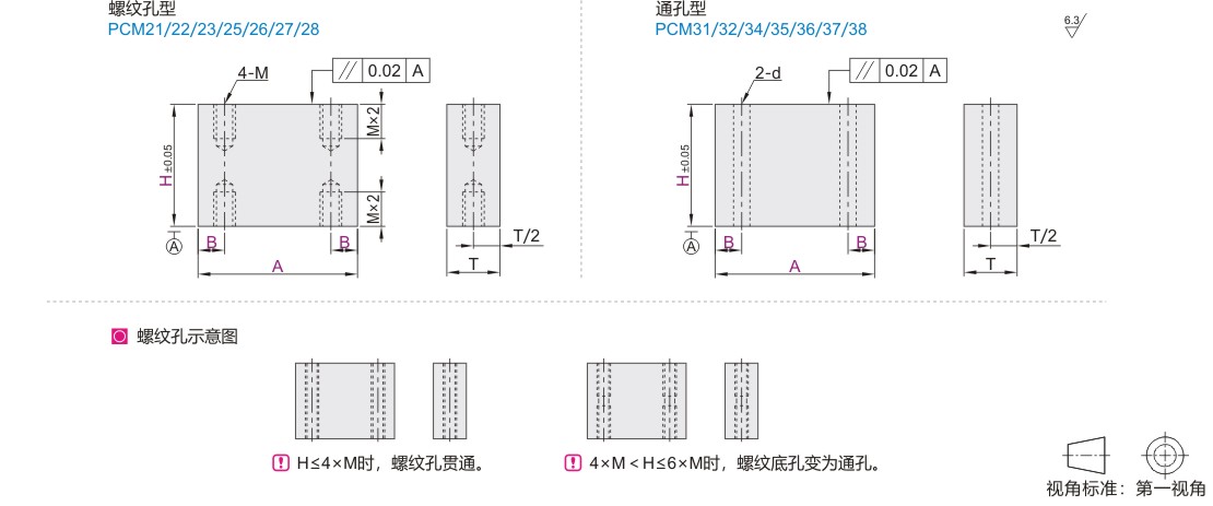 | 螺纹孔型 PCM21 PCM22 PCM23 通孔型 PCM31 PCM32 PCM34 |