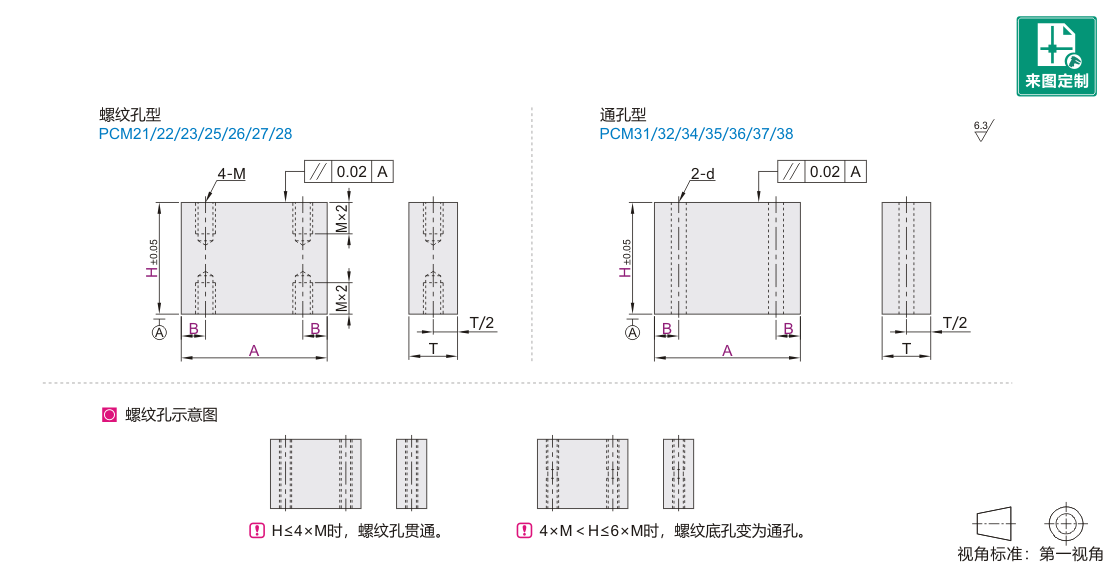 螺纹孔型 通孔型 PCM35 PCM36 PCM37 PCM38 |
