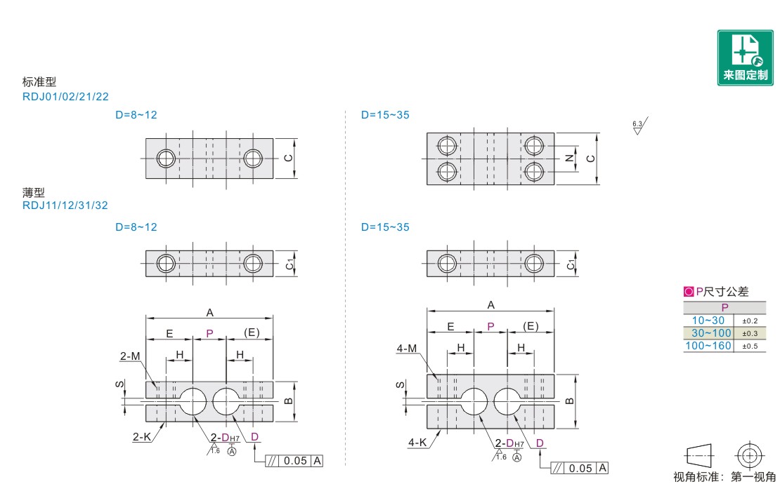 | RDJ01 | 孔距选择型 | 标准型 | Q235 | SS400 | 发黑 | TAC01 |
