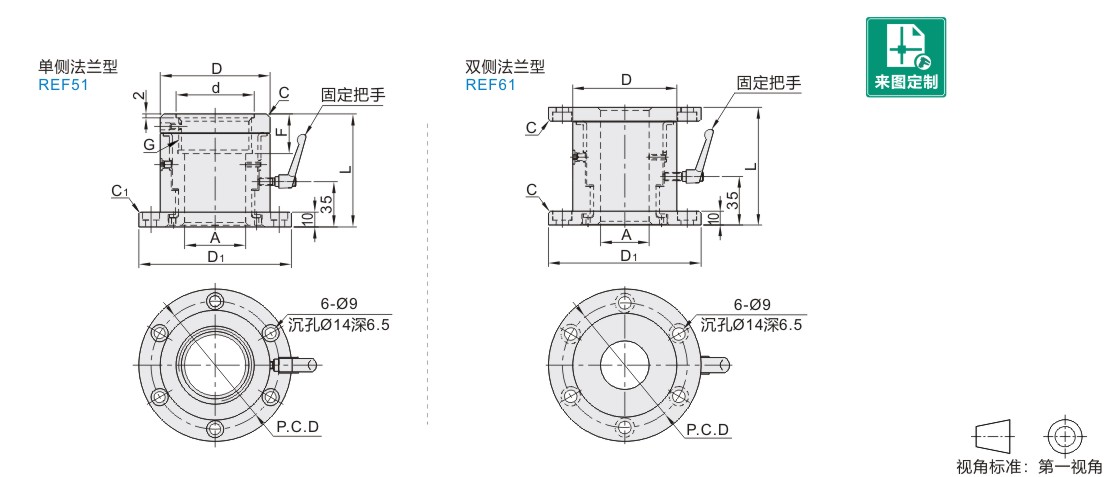 带固定把手旋转接头 单侧法兰型 双侧法兰型 沉孔型