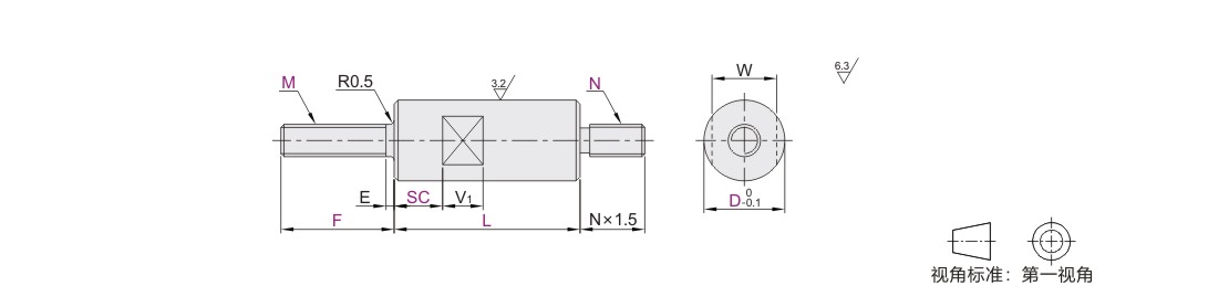 圆形支柱 两端外螺纹型 带扳手槽型