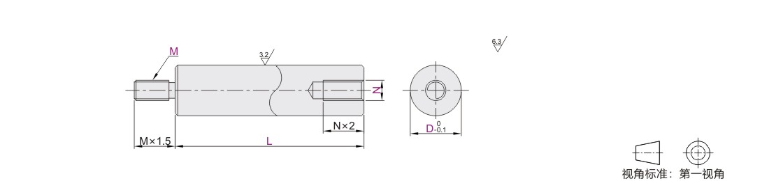 圆形支柱 一端外螺纹一端内螺纹型 L尺寸指定型 螺纹指定型 轴身不加工