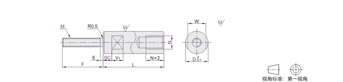 圆形支柱 一端外螺纹一端内螺纹型 螺纹长度指定型 带扳手槽型