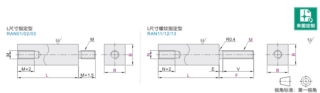 | RAN01 | RAN11 | 台阶型 | 两端外螺纹型 | 标准型 | Q235 | SS400 | — |