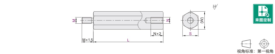 六角支柱 一端外螺纹一端内螺纹型 L尺寸螺纹指定型