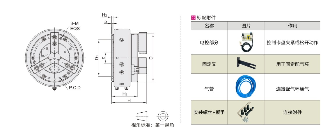 气动卡盘 前置式 三孔安装型 合金钢材质