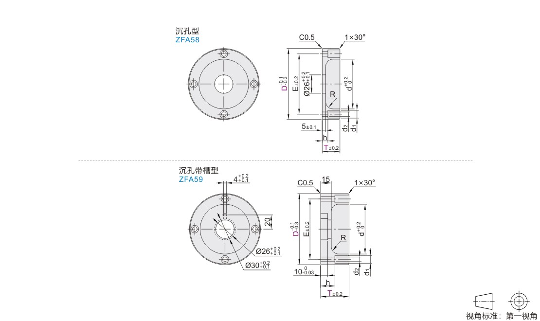 | ZFA58 | 带肩型用 | 沉孔型 | S45C |