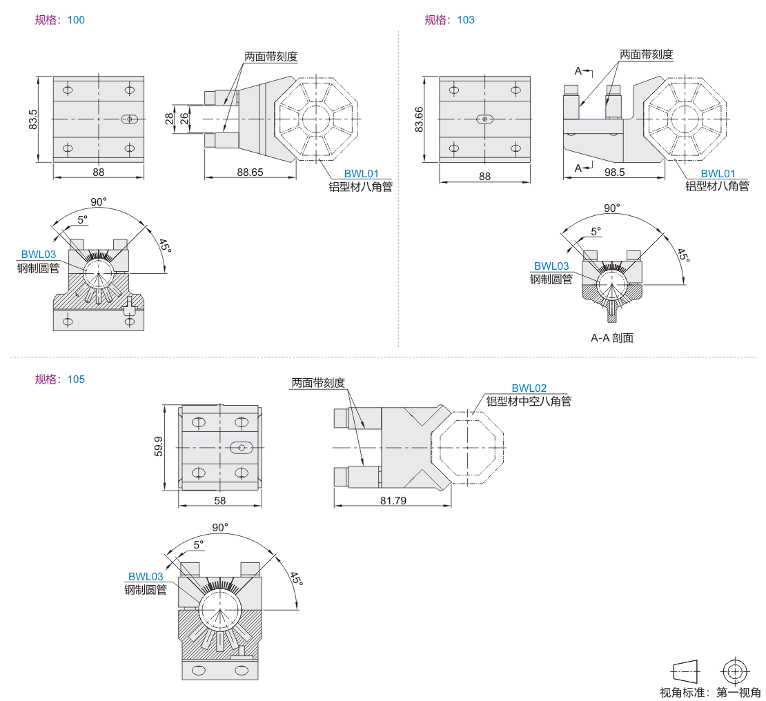 八角管抓具配件 连接件 异管十字连接型 铝合金材质