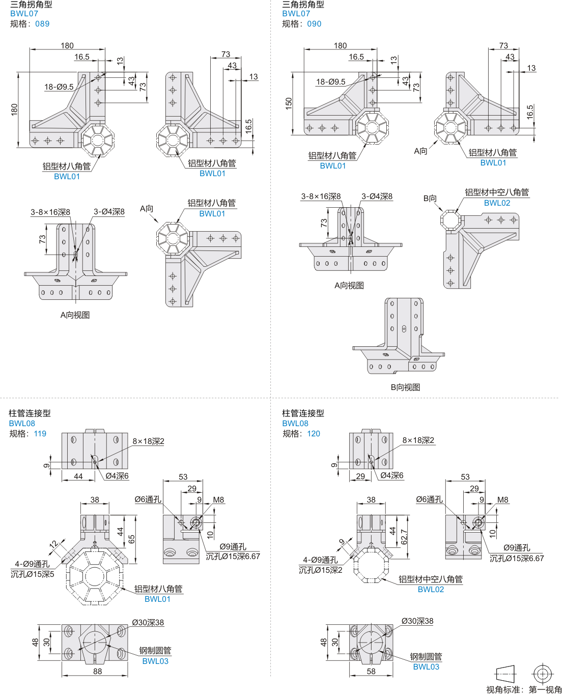八角管抓具配件 连接件 三角拐角型 柱管连接型