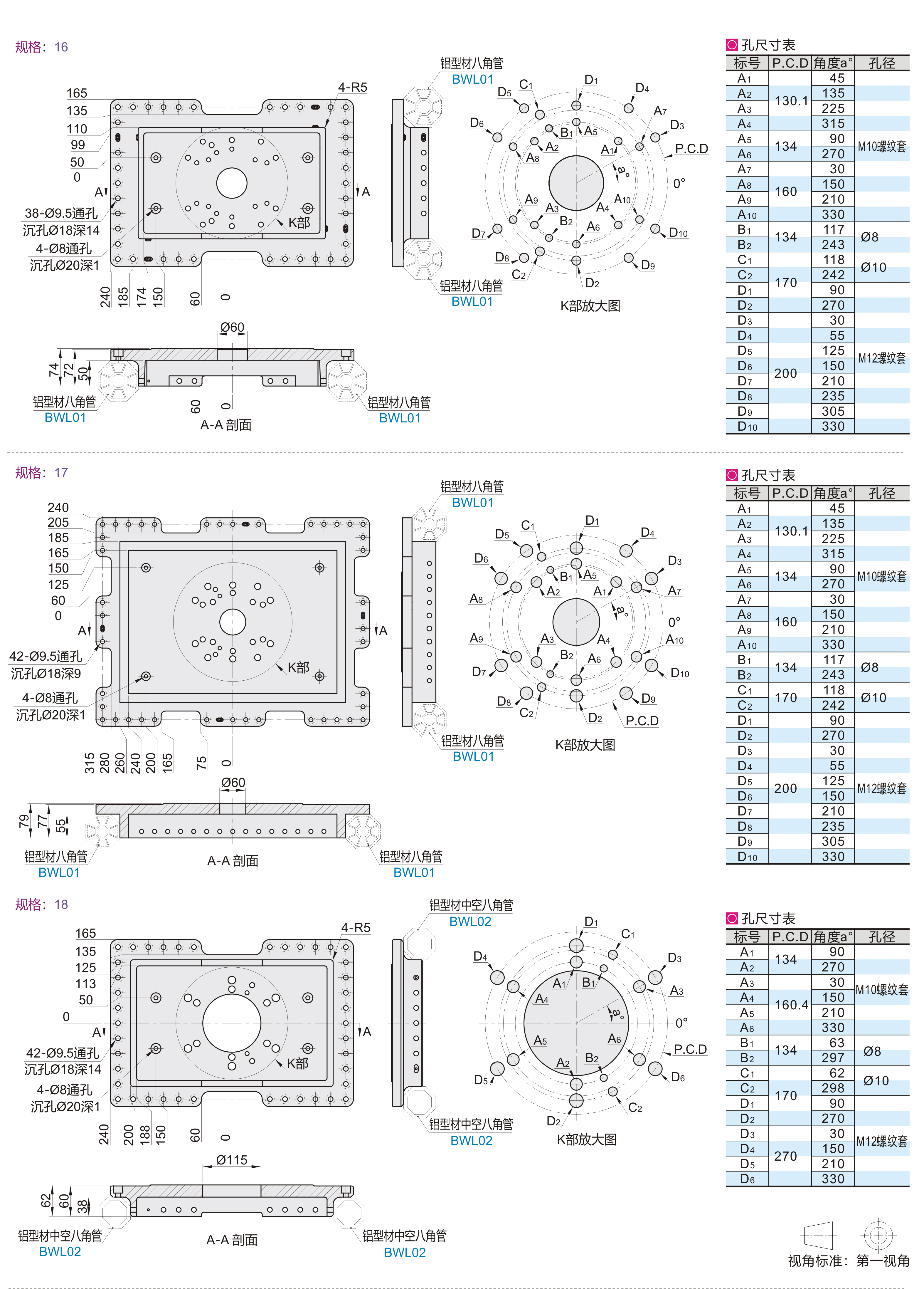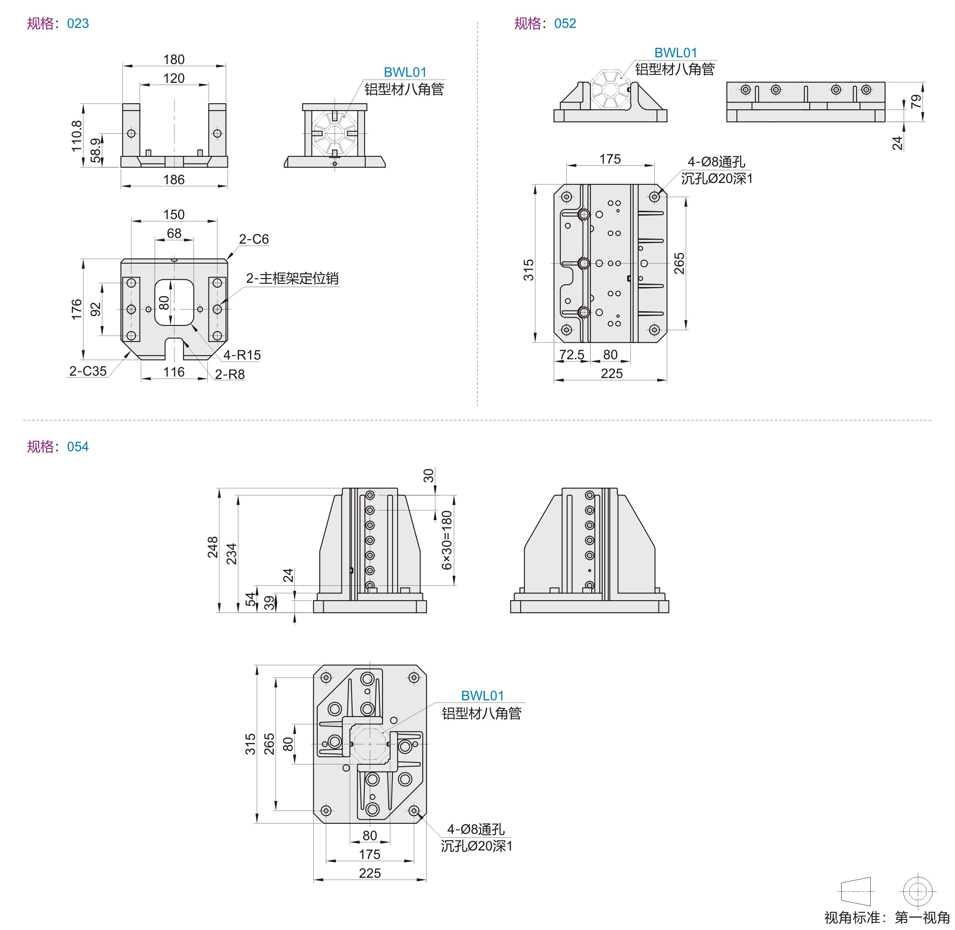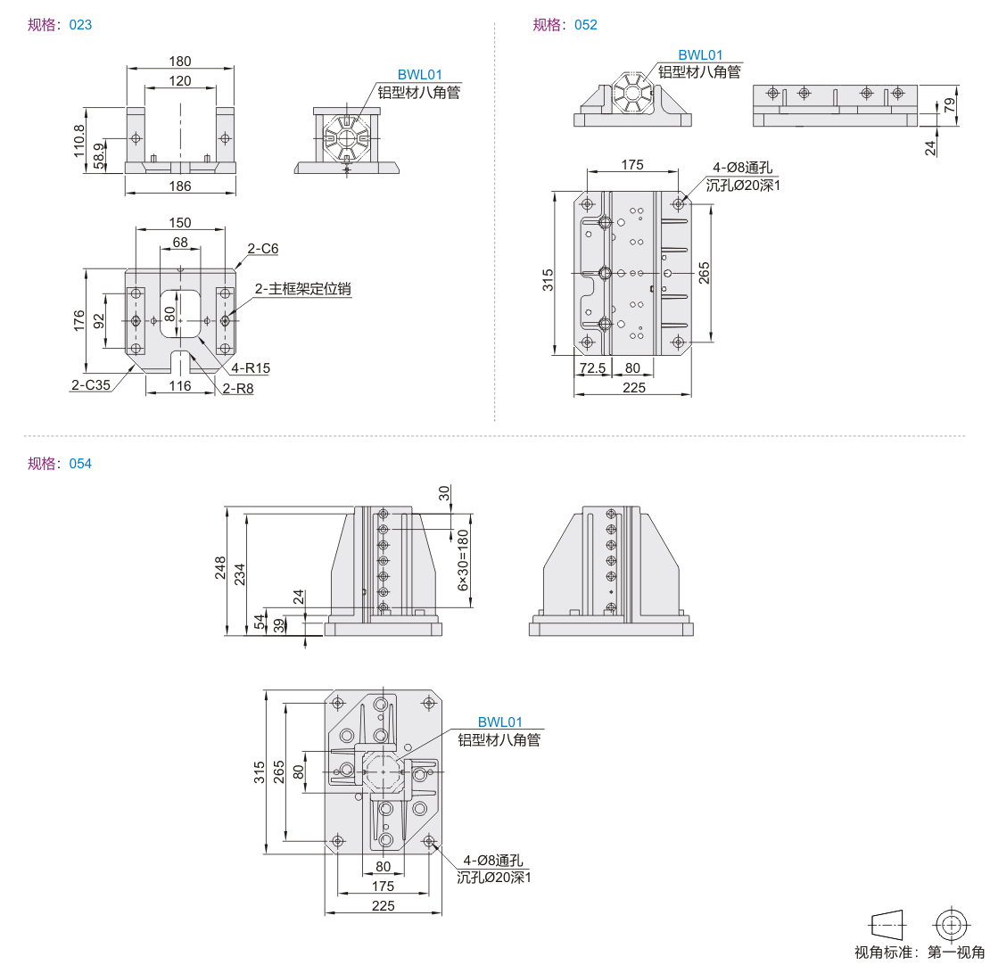 八角管抓具配件 基座 标准型 铝合金材质