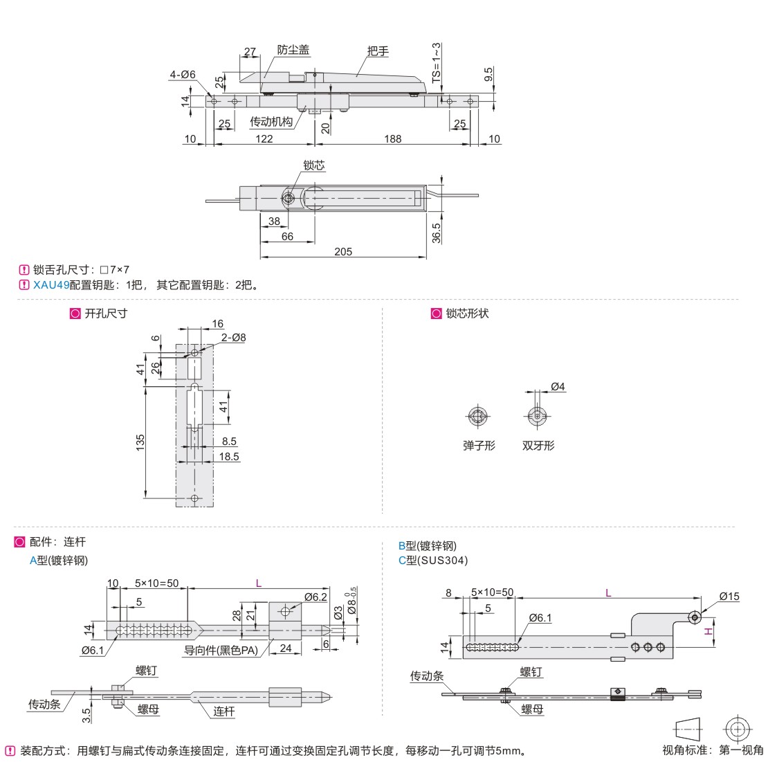 连杆锁 两点式 把手拉起转动式