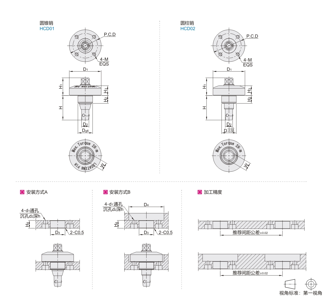 | HCD01 | 圆锥销 | SCM440 | SCM435 | SUJ2 | 盐浴软氮化处理 | 发黑 (淬火回火) |