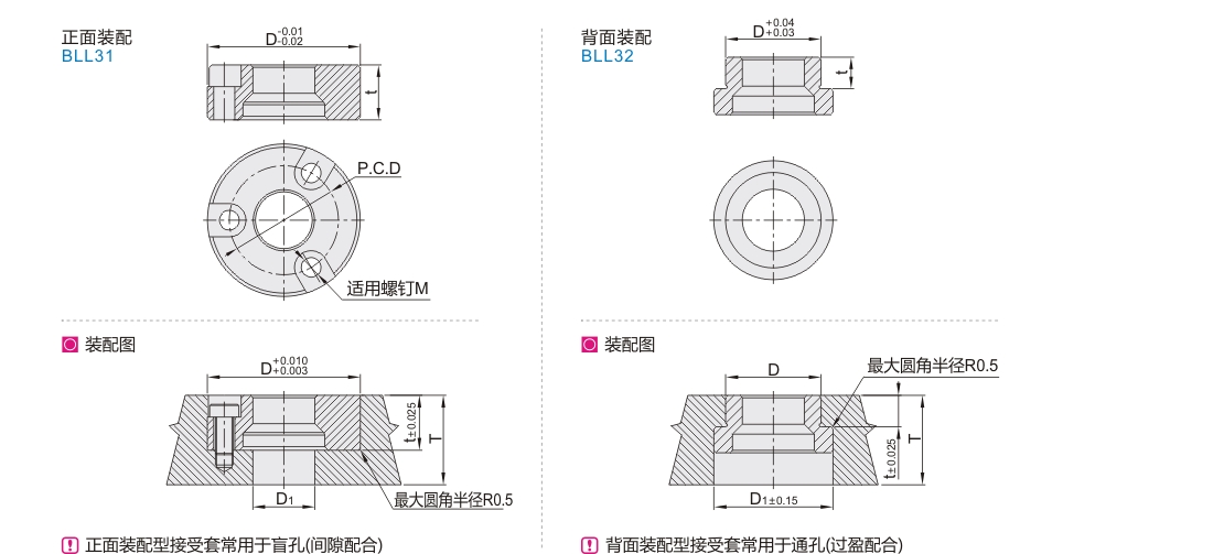 | BLL31 | 普通型 | 正面装配 | 40CrNi2MoA | 黑色阳极氧化 | 50~54HRC | -30~200℃ |