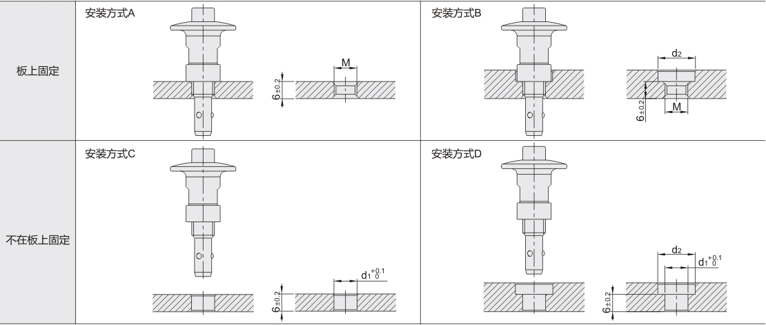 10 | 板上固定 | A | 6 | M8×1.25(粗牙) | — | — | |
