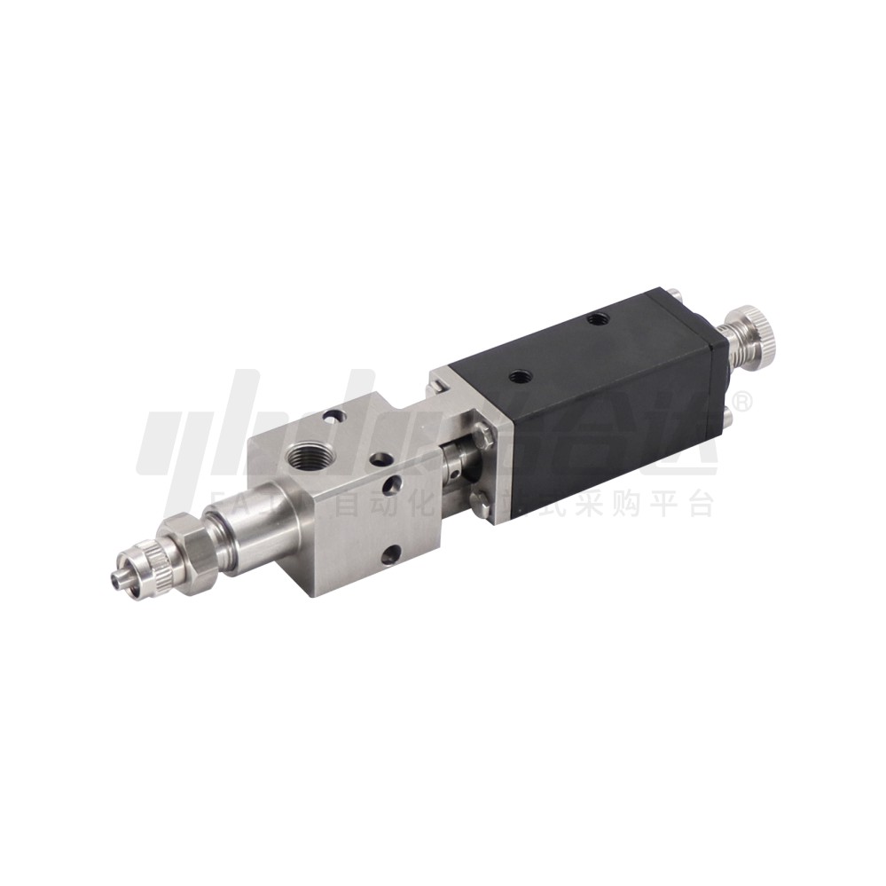 ● 胶阀的撞针冲程可调节,具备独特的校准功能,在点涂流体时可保持精确的胶点大小,非常适合自动装配流程,不锈钢关闭