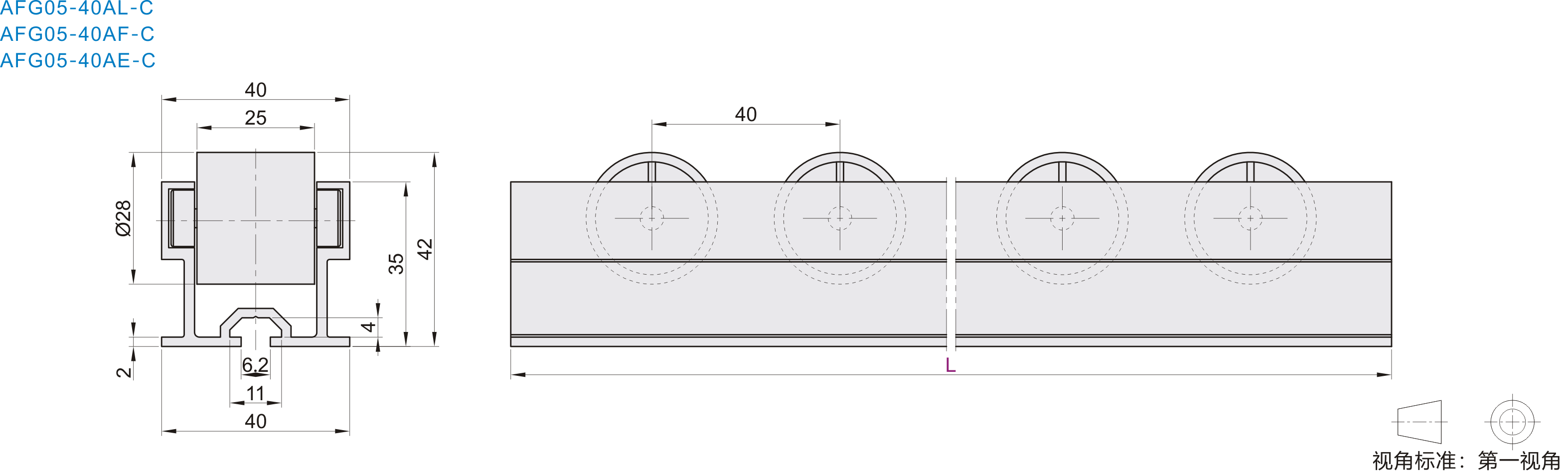 | AFG05-40AL-C | 铝合金流利条 | A6063-T5 | 喷砂氧化 | ABS | 白/黄/黑 |