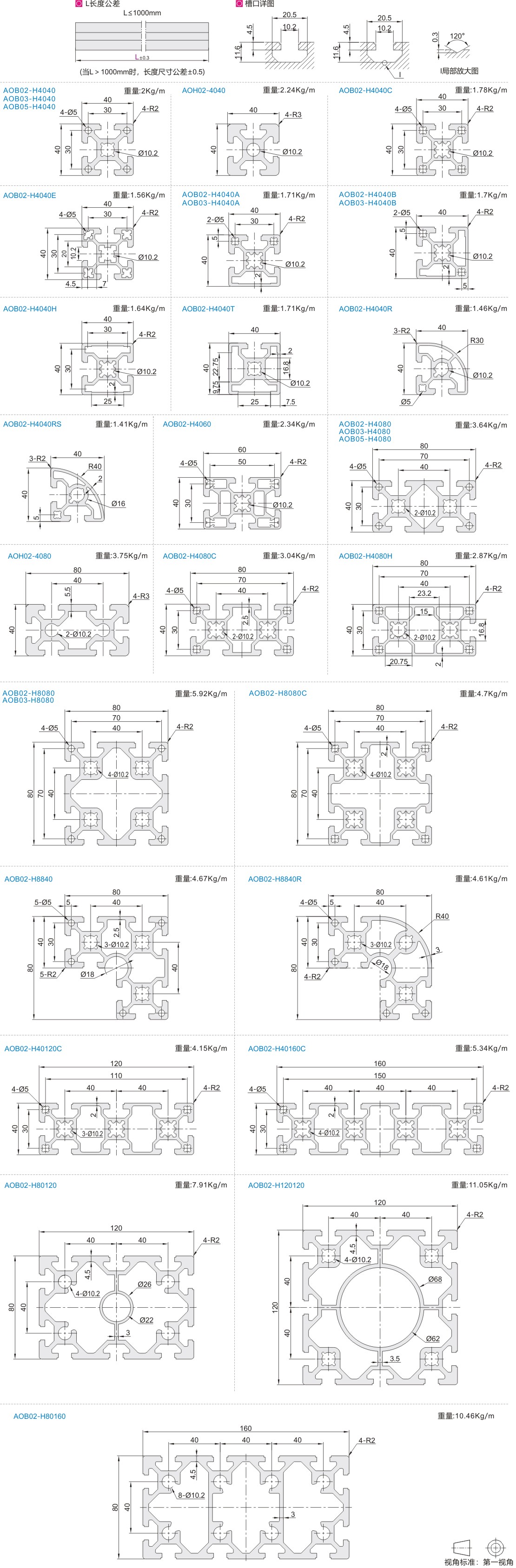 铝合金型材 欧标40系列 槽宽10.2 A6063-T5/A6063-T6/A6005-T6 喷砂氧化/黑色氧化/碱砂氧化