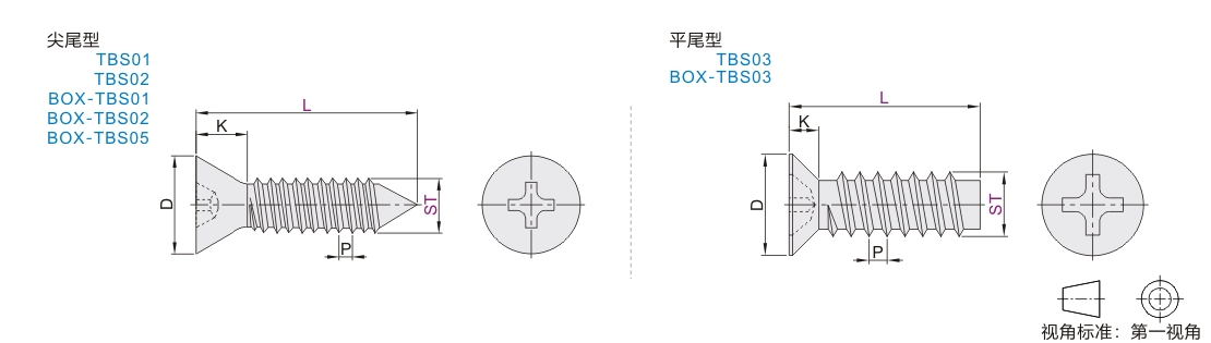 | TBS01 | TBS03 | 十字沉头 自攻螺钉 |