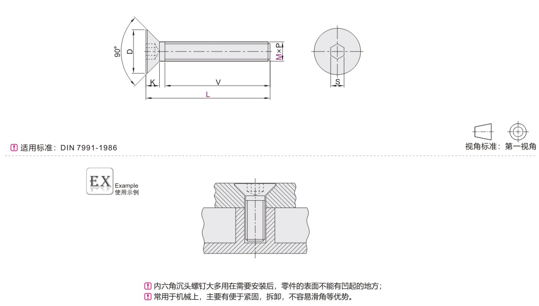| Y-JAA25 | 内六角沉头螺钉 | 粗牙 |