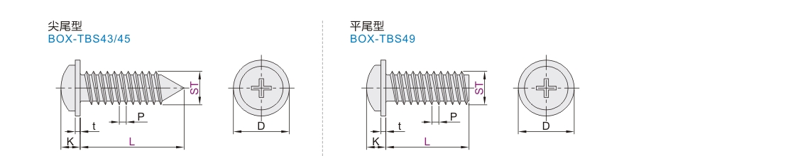 | BOX-TBS43 | — | 十字槽盘头 带介自攻螺钉 |