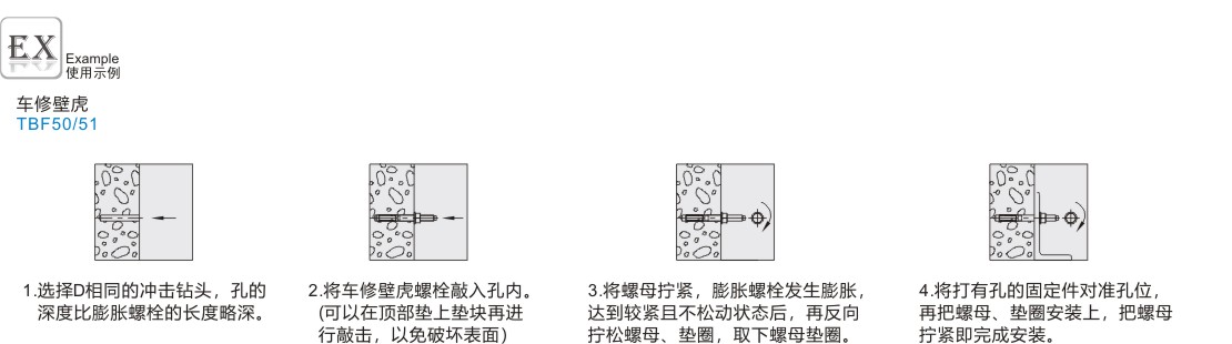 | TBF50 | 车修壁虎 | 碳钢 | 镀锌 | 4.8 | |