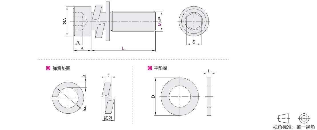 内六角圆柱头组合螺钉 组合型 SCM435材质/SUS304材质 带平垫圈、弹簧垫圈 全牙 粗牙
