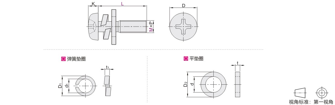 十字盘头组合螺钉 组合型 SUS304材质 带平垫圈、弹簧垫圈/带弹簧垫圈 粗牙