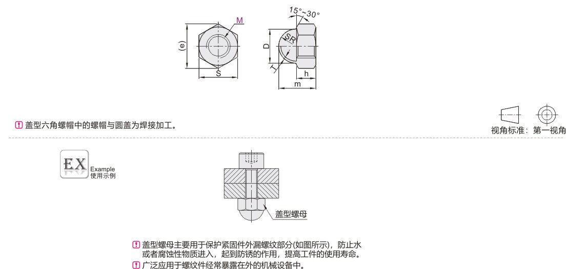 医疗六角螺母 盖型 SUS304材质/SUS316材质 粗牙