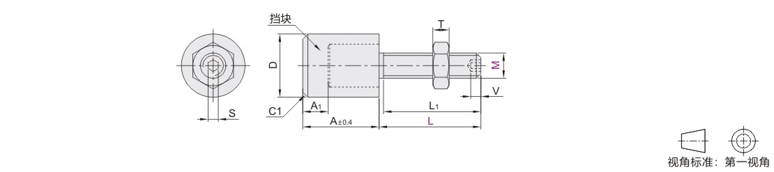 圆柱头挡块止动螺钉 调节型 平头圆柱大挡块 内六角孔型