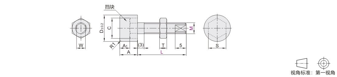 | 代码 | 类型 | 螺纹 | 主体 | 挡块 | 附件(1个六角螺帽) | |||||