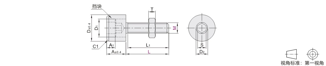 内六角圆柱头带挡块螺钉 调节型尾部平端型 挡块材质聚氨酯 标准型/ 防静电型 全牙 粗牙