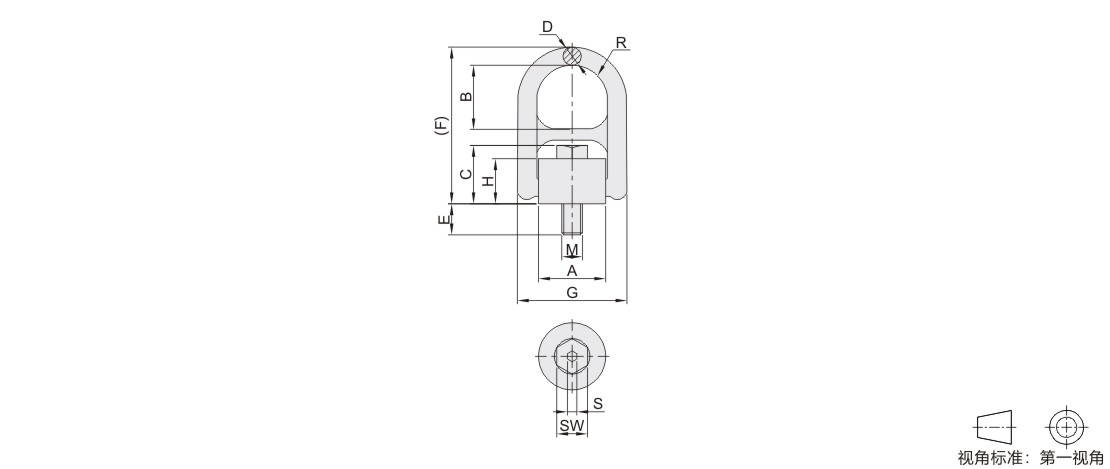 | 型号 | M | 安全系数 | A | B | C | D | E | (F) | G | H | R | S | SW | 净重 (kg) |
