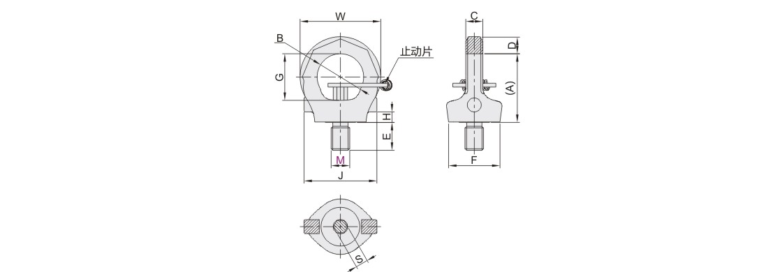 带止动片眼型旋转吊环 合金钢材质 主体烤漆(橙色)螺纹达克罗