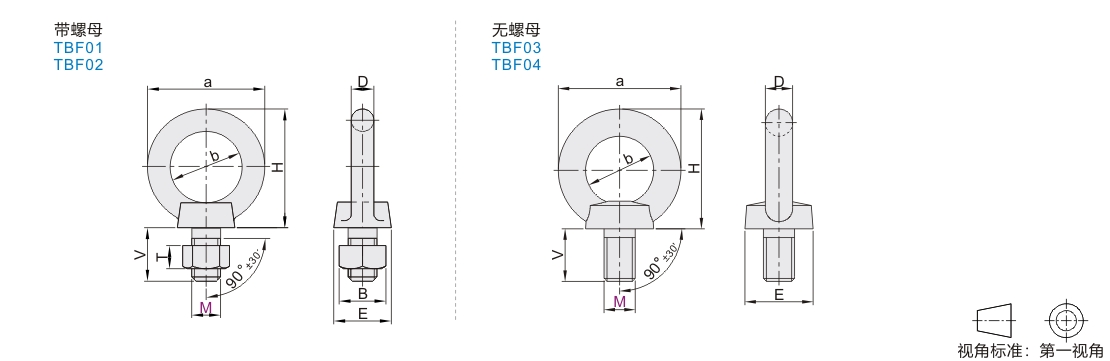 | TBF01 | 吊环螺钉 | 带螺母 | Q235 | SS400 | 镀锌 |