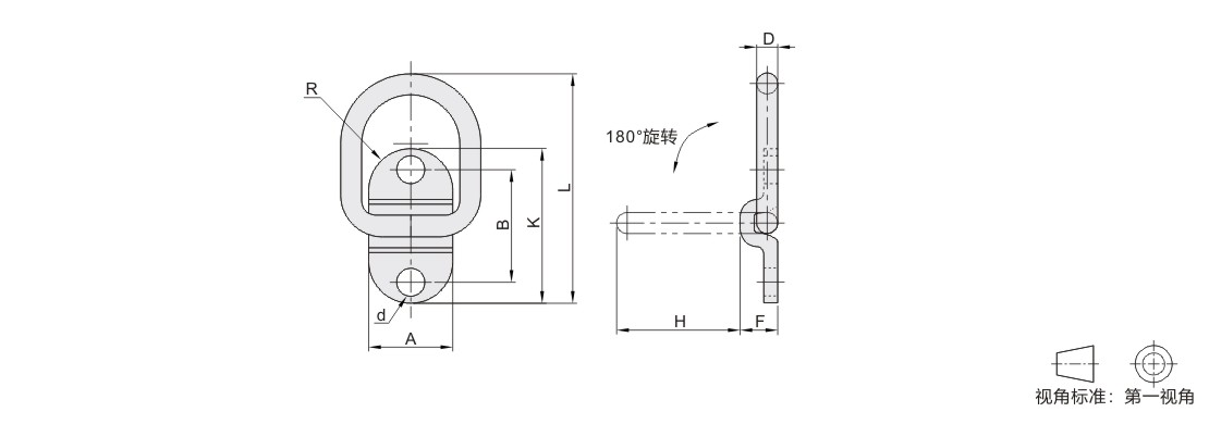 吊环位置可绕单轴旋转180°,在一定范围类可保证工件起吊时的角度,保证其处于水平面。
