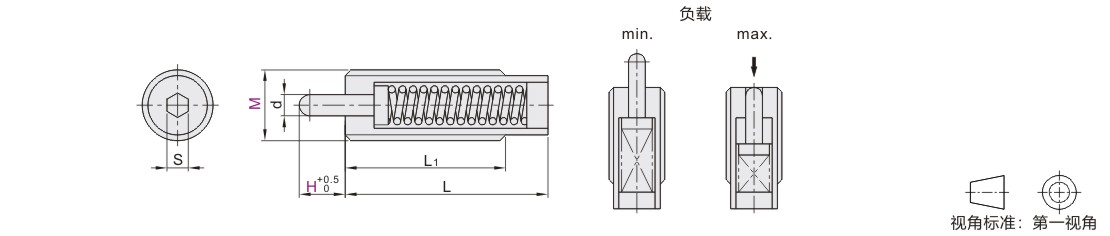负载min.表示初始负载,max.表示球头最大压入限度时的负载。