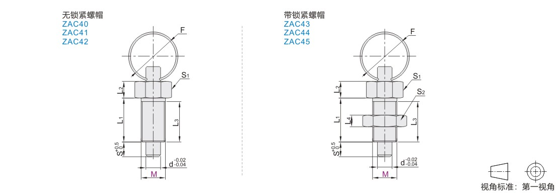 | ZAC40 | 拉环型 | 复位型 | 无锁紧螺帽 | 粗牙 | S45C | 发黑 | SUS303 | 一 | SUS303 | 一 | — |