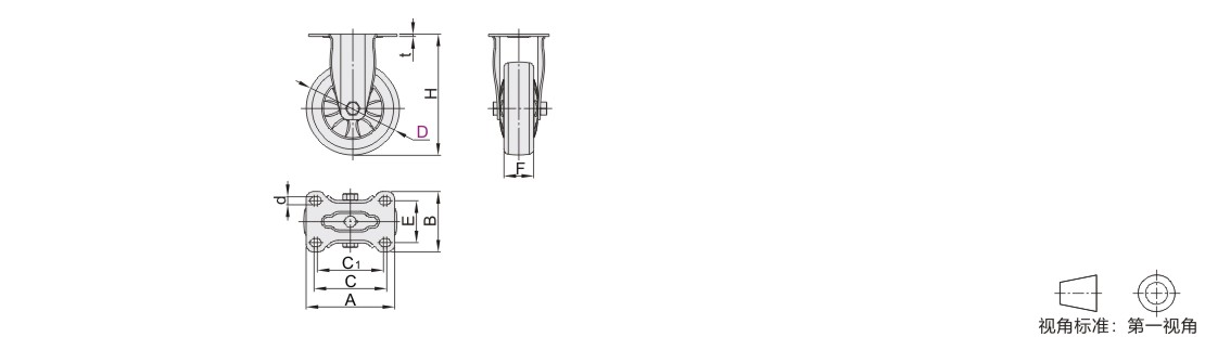 ※ 当轮材质为P(聚丙烯)时,支架的表面处理为镀锌,其余为电泳黑漆。