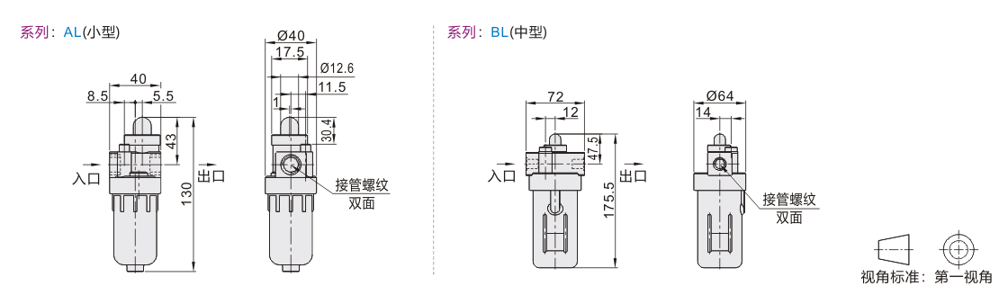 怡合达自营 油雾器 安装尺寸跟中国台湾标准一致