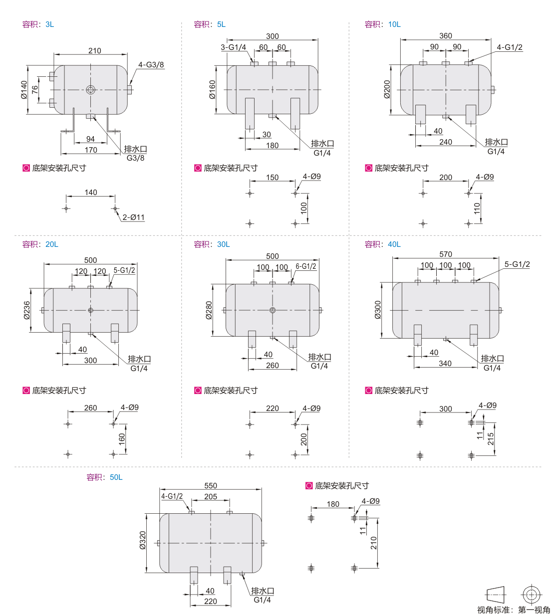 储气罐底部为排水口,一般配合排水阀使用,剩下罐体的孔,留出一个进气口,出气口,剩下孔位可选装压力表,安全阀,或者用堵头堵住即可。