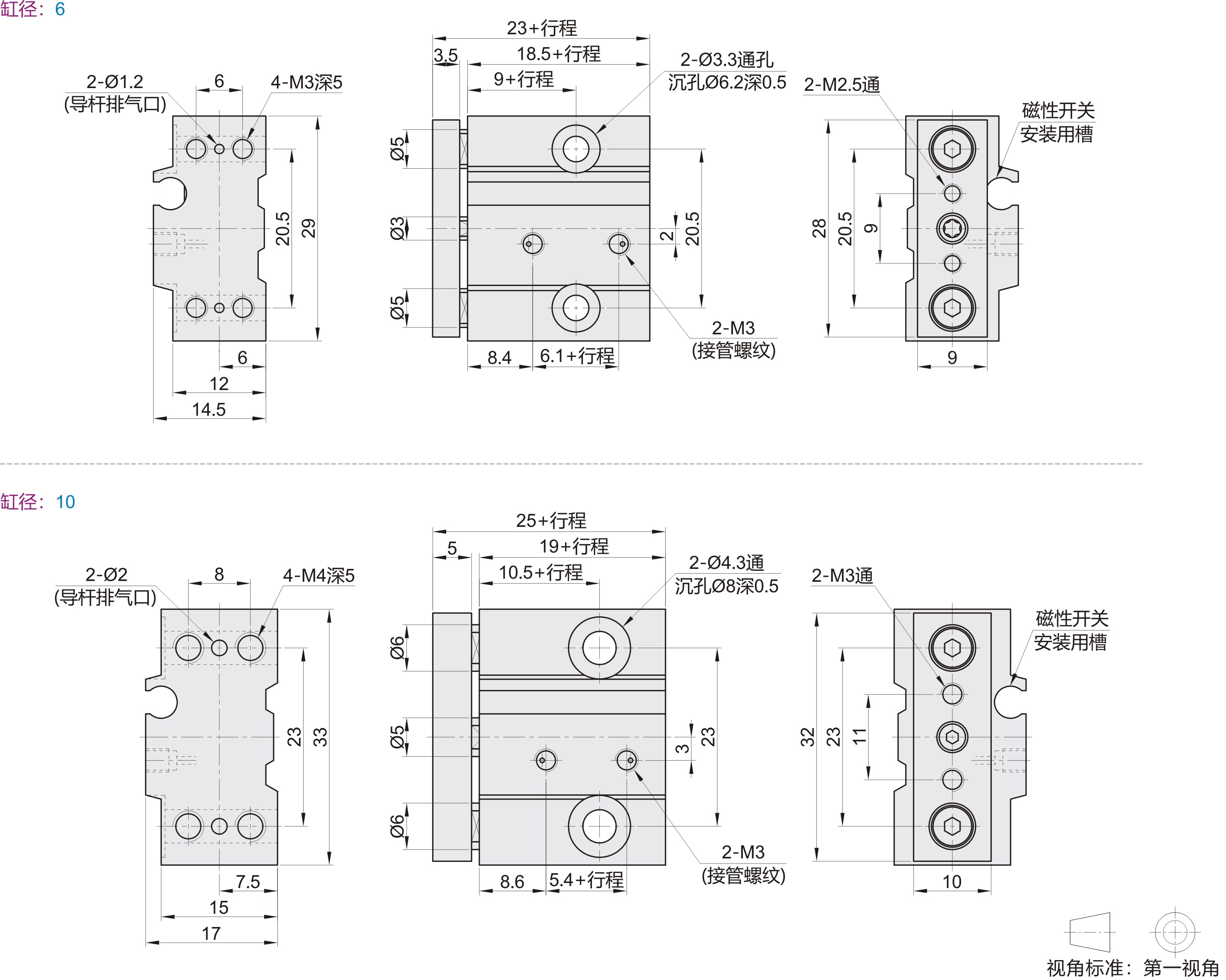 气缸选型尾部-0,表示单独气缸,-2表示附2条磁性开关;-2表示我司标配的磁开为电子式,两线制,2米线长磁开,如需NPN,PNP需在型号后备注。